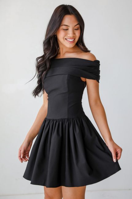 FINAL SALE – Unbelievably Lovely Black Off-The-Shoulder Mini Dress