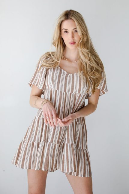 FINAL SALE – Springtime Sweetie Off White Striped Linen Tiered Mini Dress
