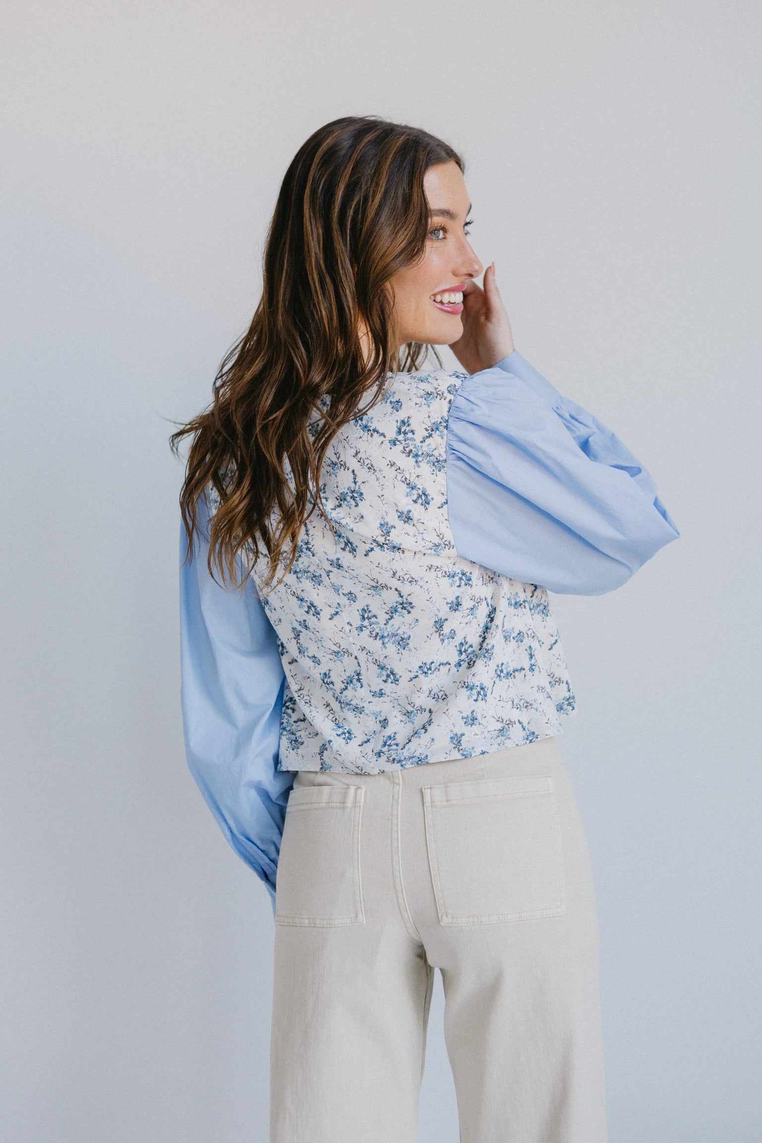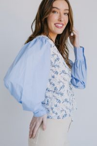 Solid blue, balloon long sleeves