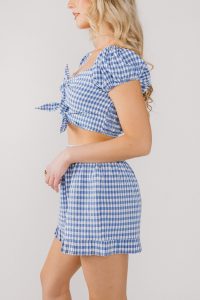 Blue and ivory gingham print